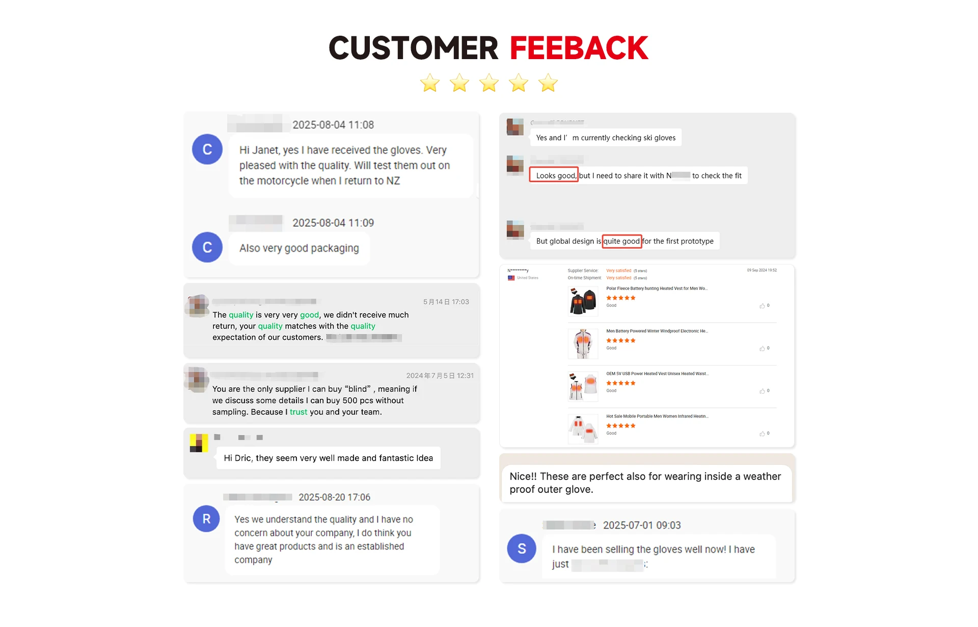 מוצרים עיקרייםכפפות מחוממות, כפפות אופנוע, גרביים מחוממים, בגדים מחוממים, מוצרי קירור